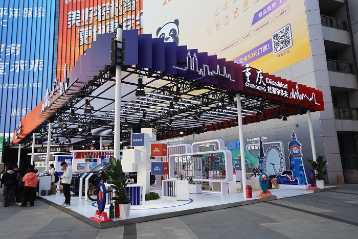 Der gemeinsame Messestand der Partnerstädte Chongqing und Düsseldorf auf der 8. Internationalen Importmesse Chinas am 10. November 2025 in Shanghai