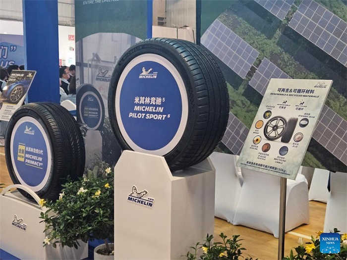 Ausgestellte Produkte anlässlich der 30-Jahr-Feier der Michelin Shenyang Tire Company Ltd. am 24. September 2025 in Shenyang in der nordostchinesischen Provinz Liaoning. (Foto: Xinhua/YuYetong)