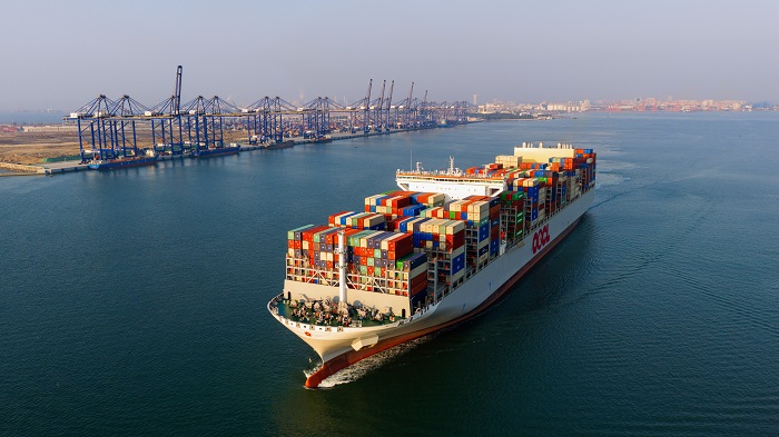 Das Containerschiff „OOCL Iris“ beim Auslaufen vom Internationalen Containerterminal Yangpu (Foto: Deng Xiaolong)