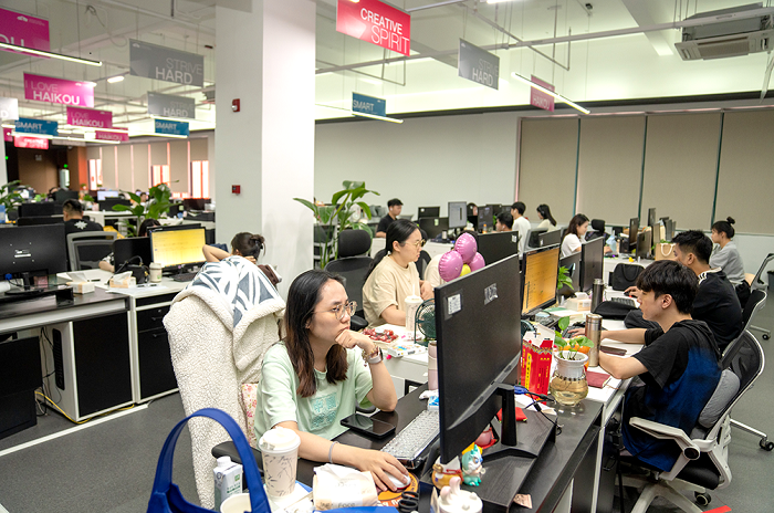 Ein Blick in die Büroräume des Digitalen Innovationsparks des Freihandelshafens Hainan in Haikou